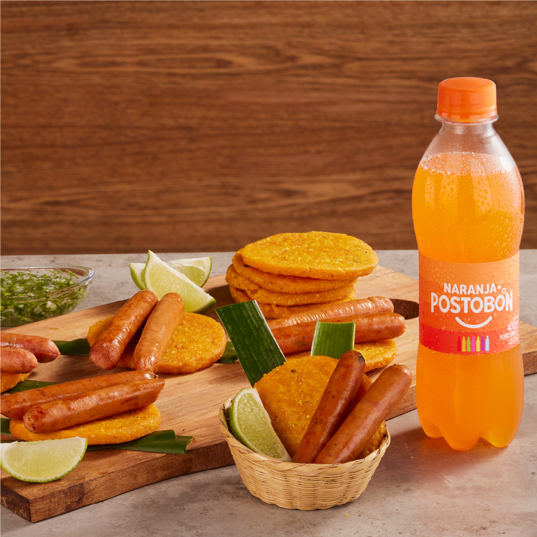 Exquisito chorizo de carne de res y cerdo más una rica arepa de maíz peto.