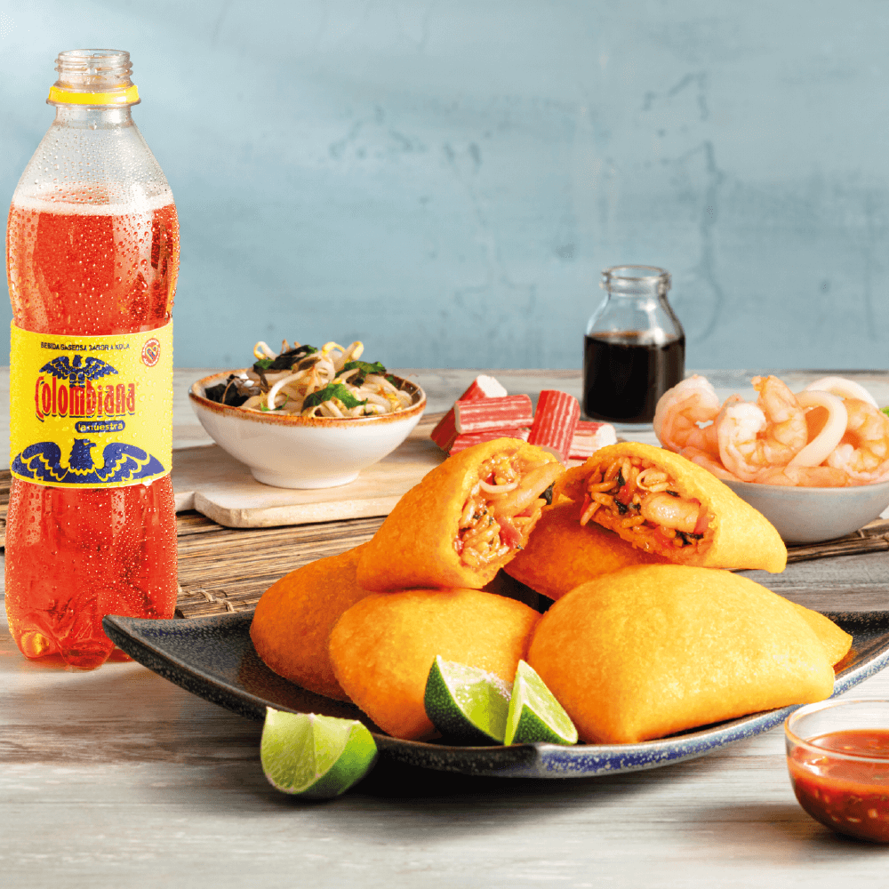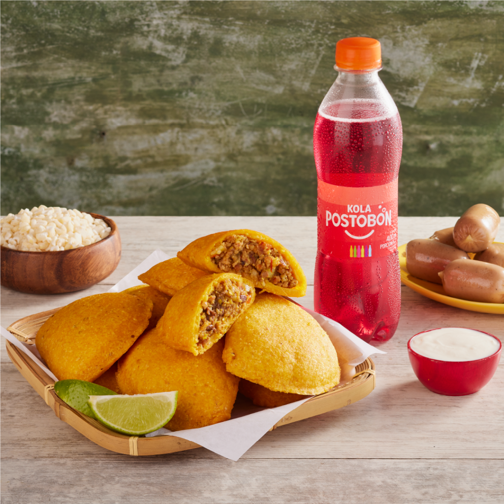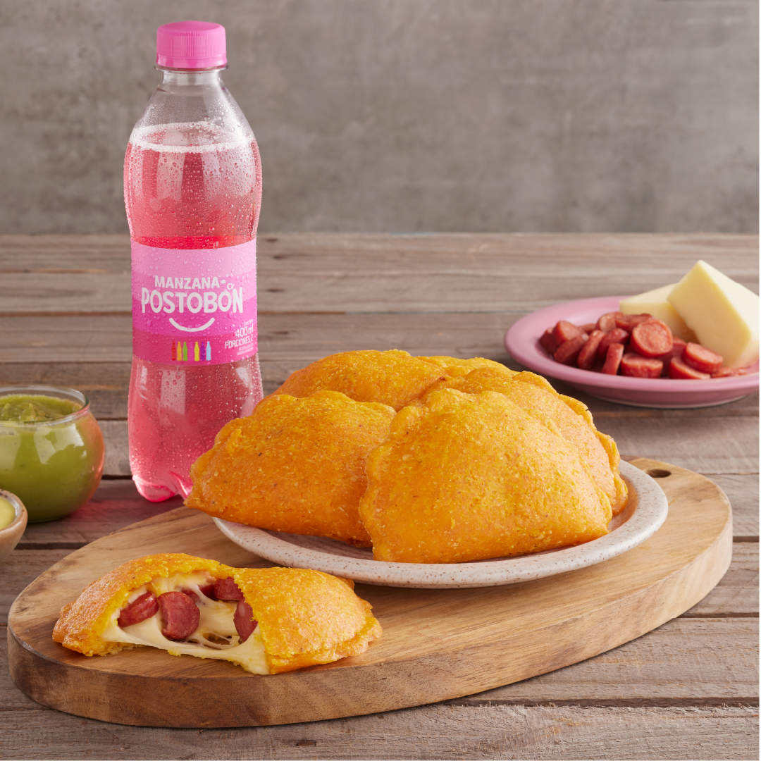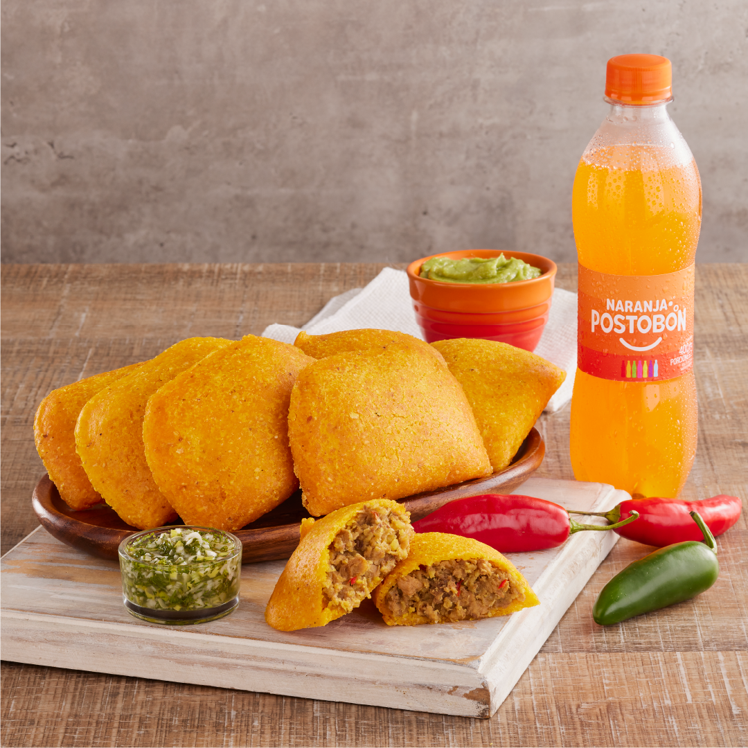 Deliciosa empanada de maíz con trozos de butifarra, carne de res, papa pastusa y guiso de la casa.